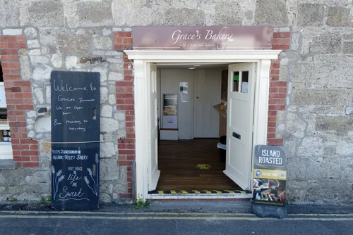 Grace’s Bakery is a family run business on the Isle of Wight. The entrance to their tiny Yarmouth shop is just a hole in the wall by the Quay.